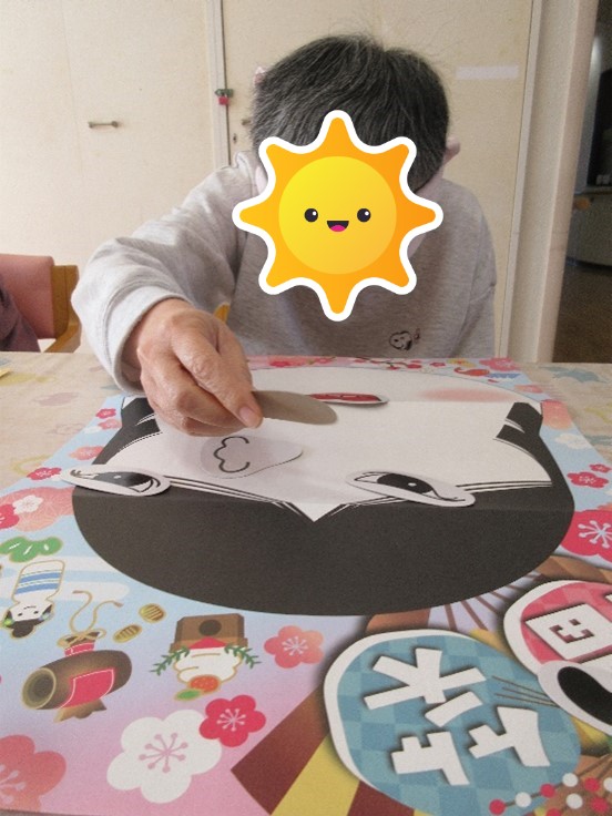 お正月遊びといえば「福笑い」。素敵な顔に仕上がっているはずが・・・目隠しを取ってビックリ(*_*)!! 思わず大笑いしちゃいました😊!!