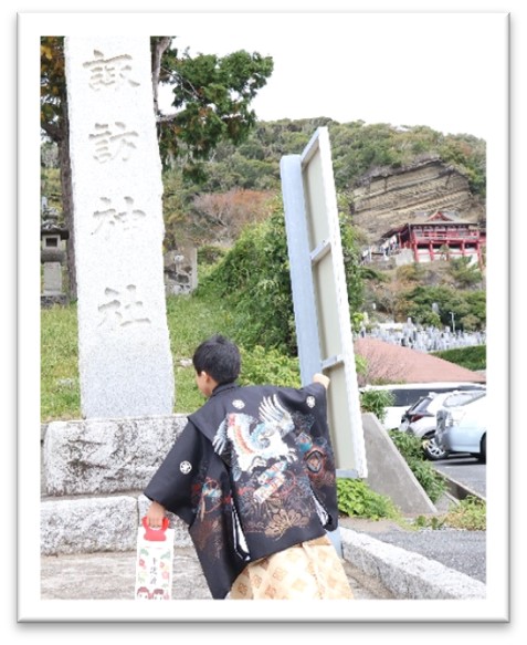 かっこよくなった2人は、崖観音へ‼ たくさんの階段を上り、お参りをしました。