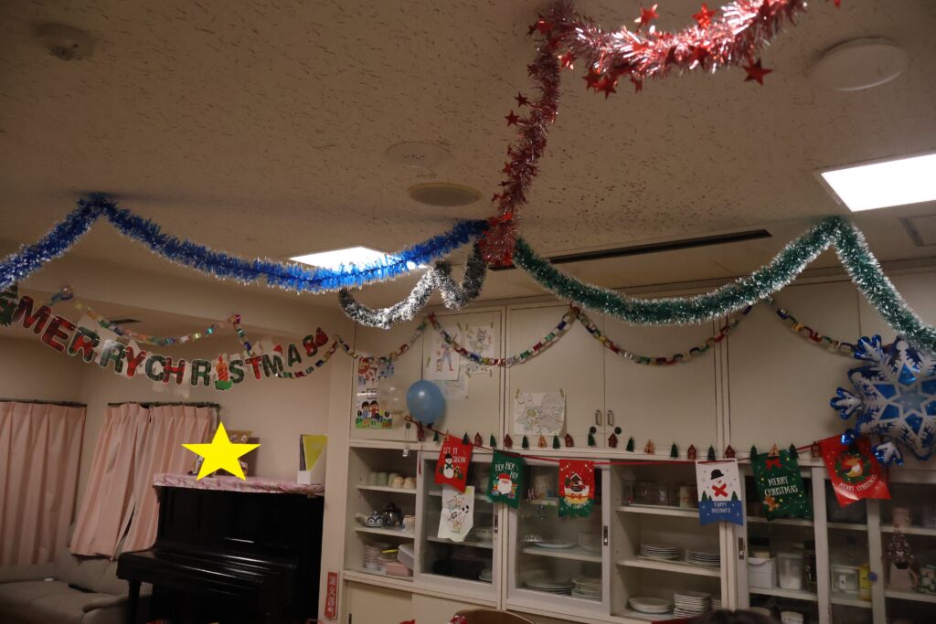 みんなで一緒に飾りつけをして、クリスマス会を開く準備はバッチリ! (*^^*)