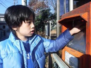 ポストに出しに行きました。