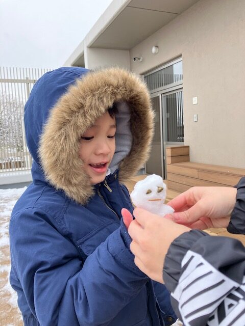 雪が降ったので外に出て雪遊びをしました!