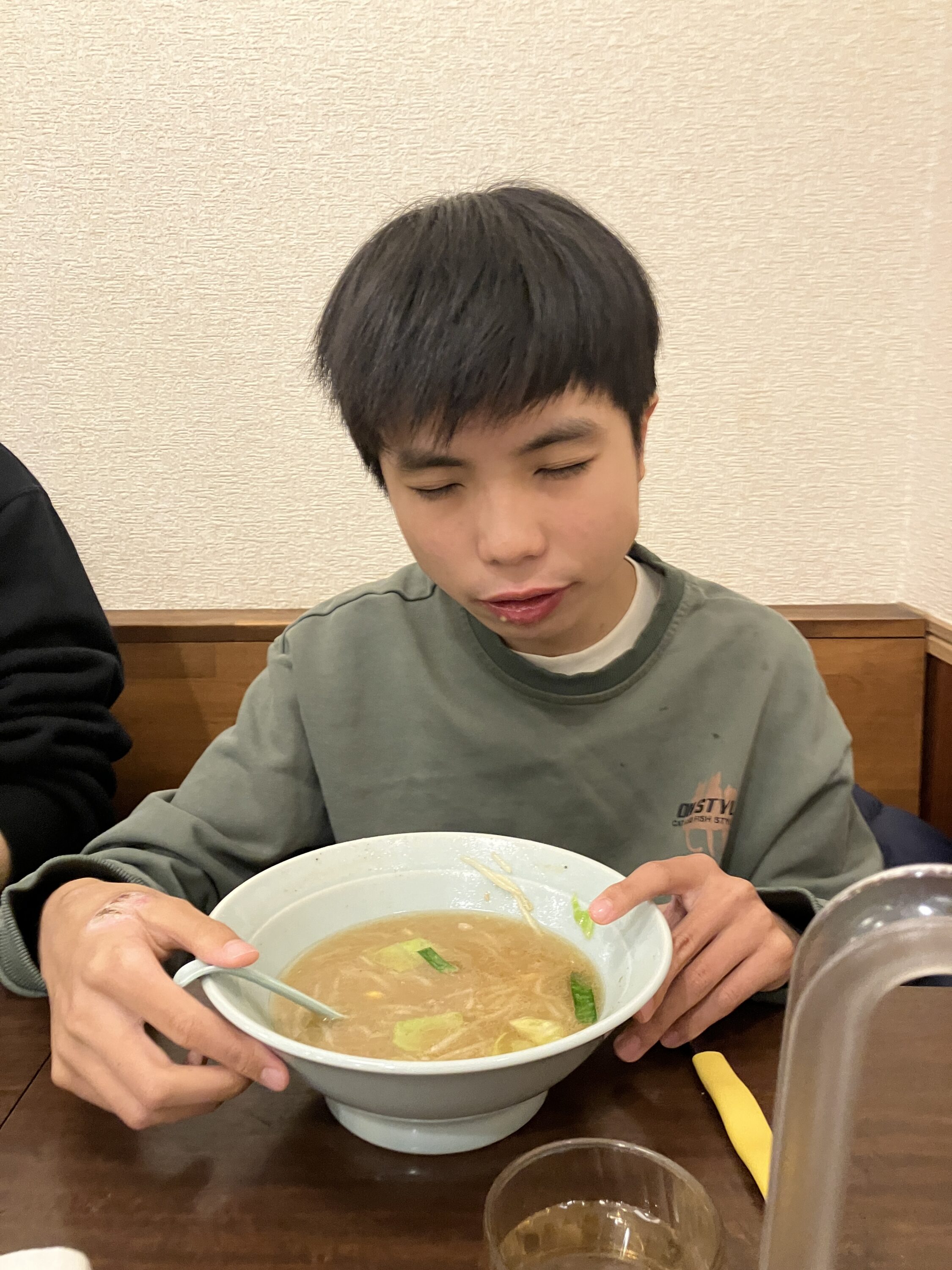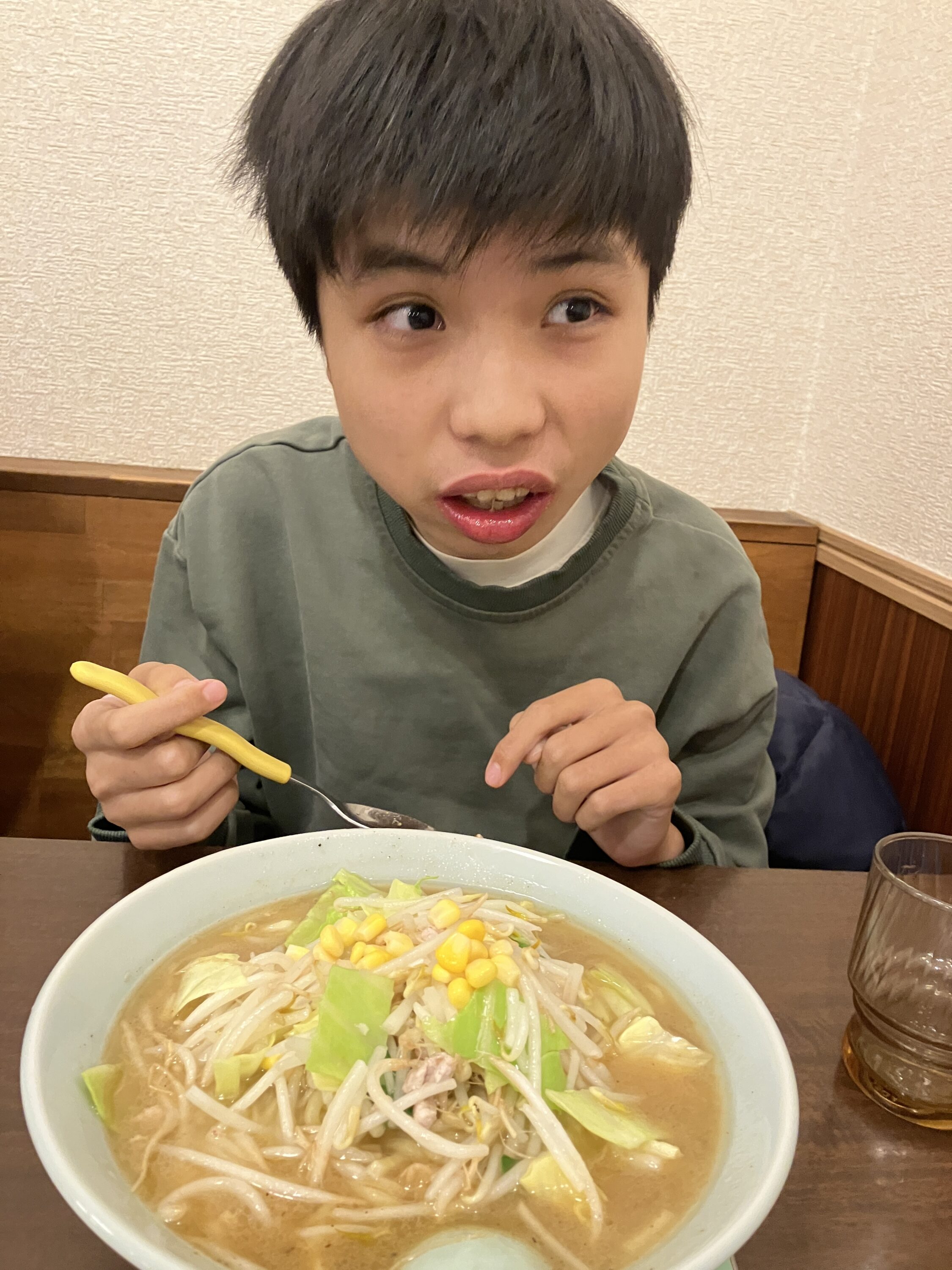熱っ!の表情と、ラーメンのおいしさを噛みしめている表情が見られました。