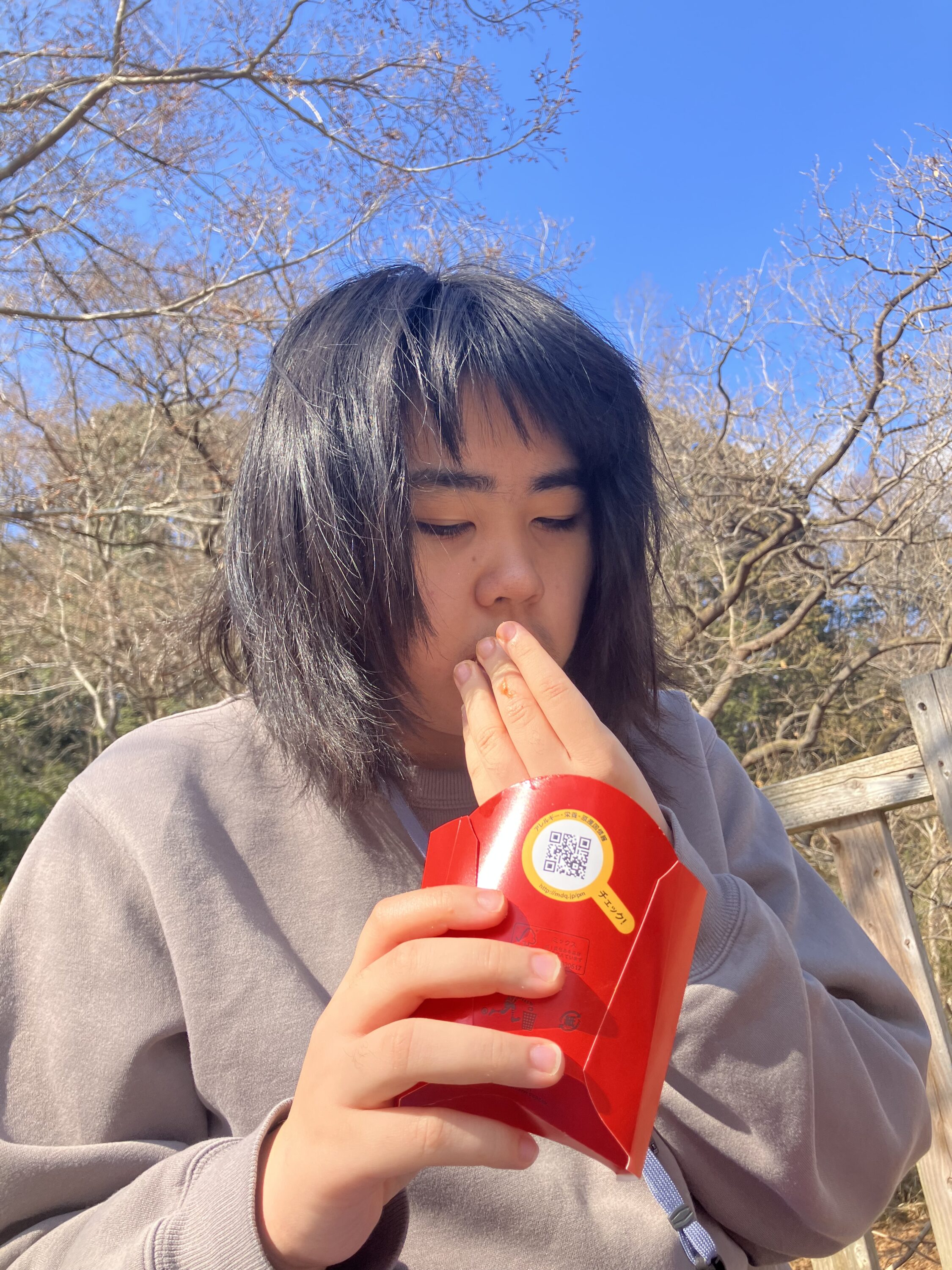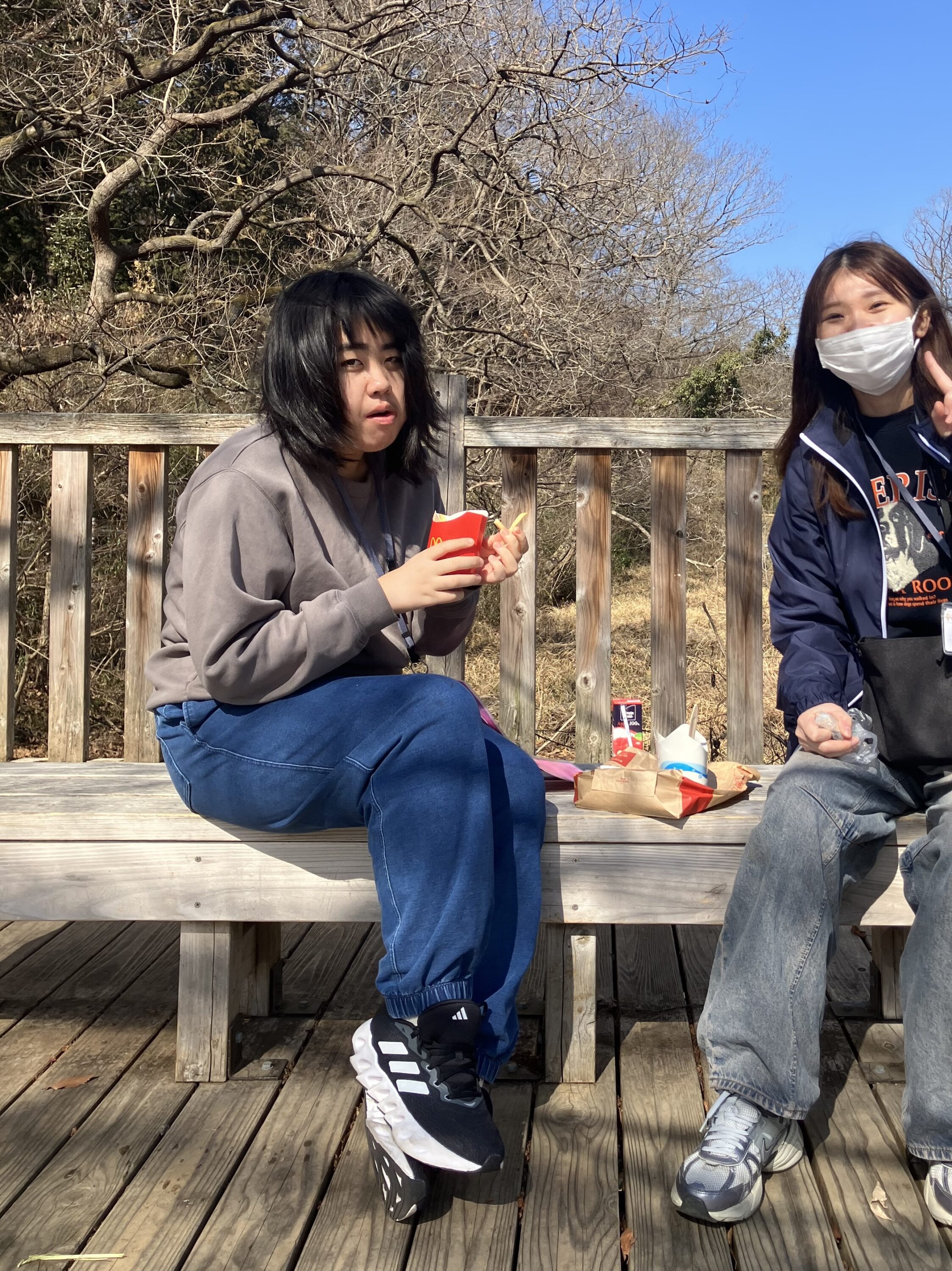 公園でマックを食べ、ピクニック気分♪