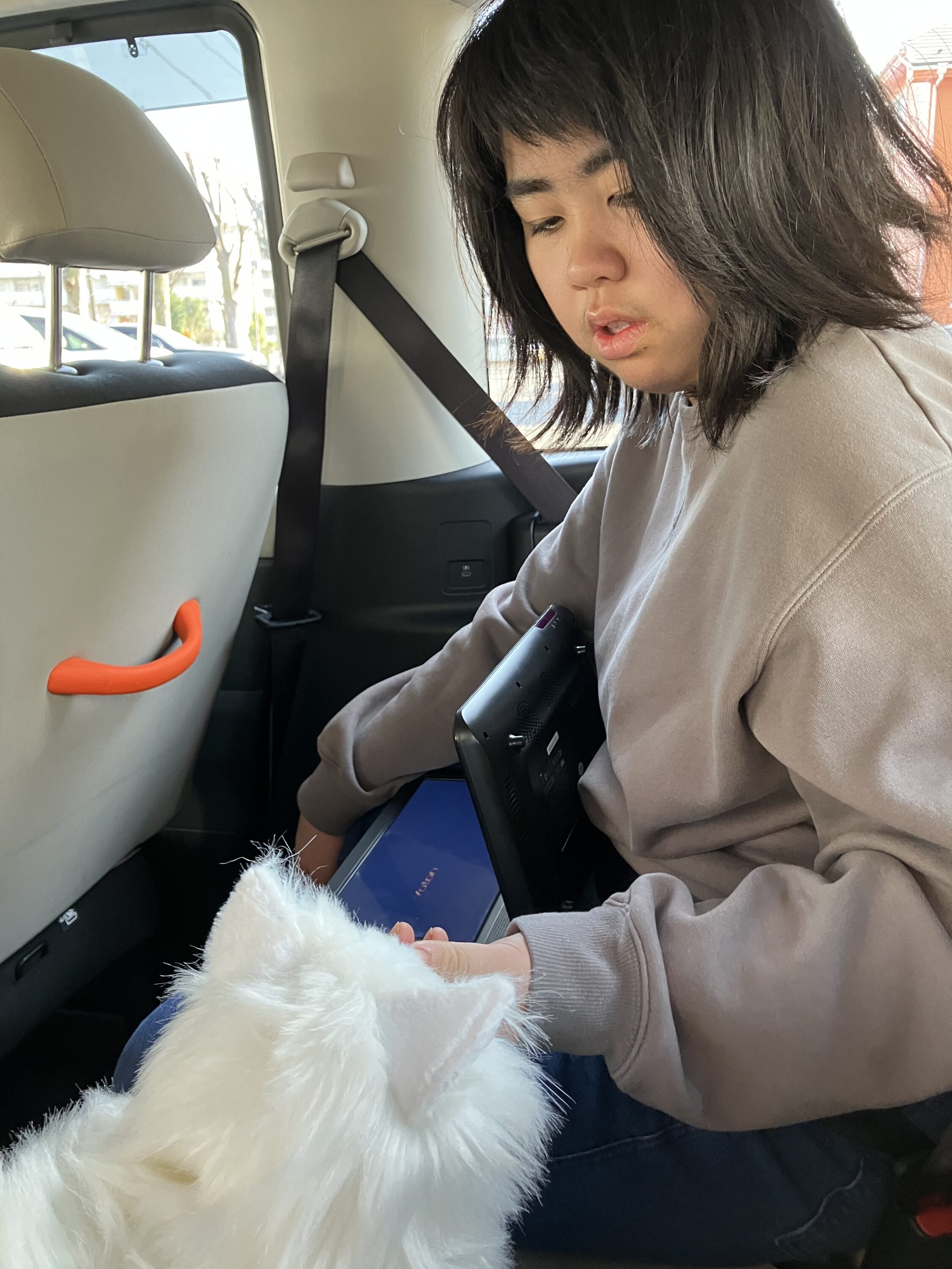 帰りの車ではネコの動くぬいぐるみが登場!!
