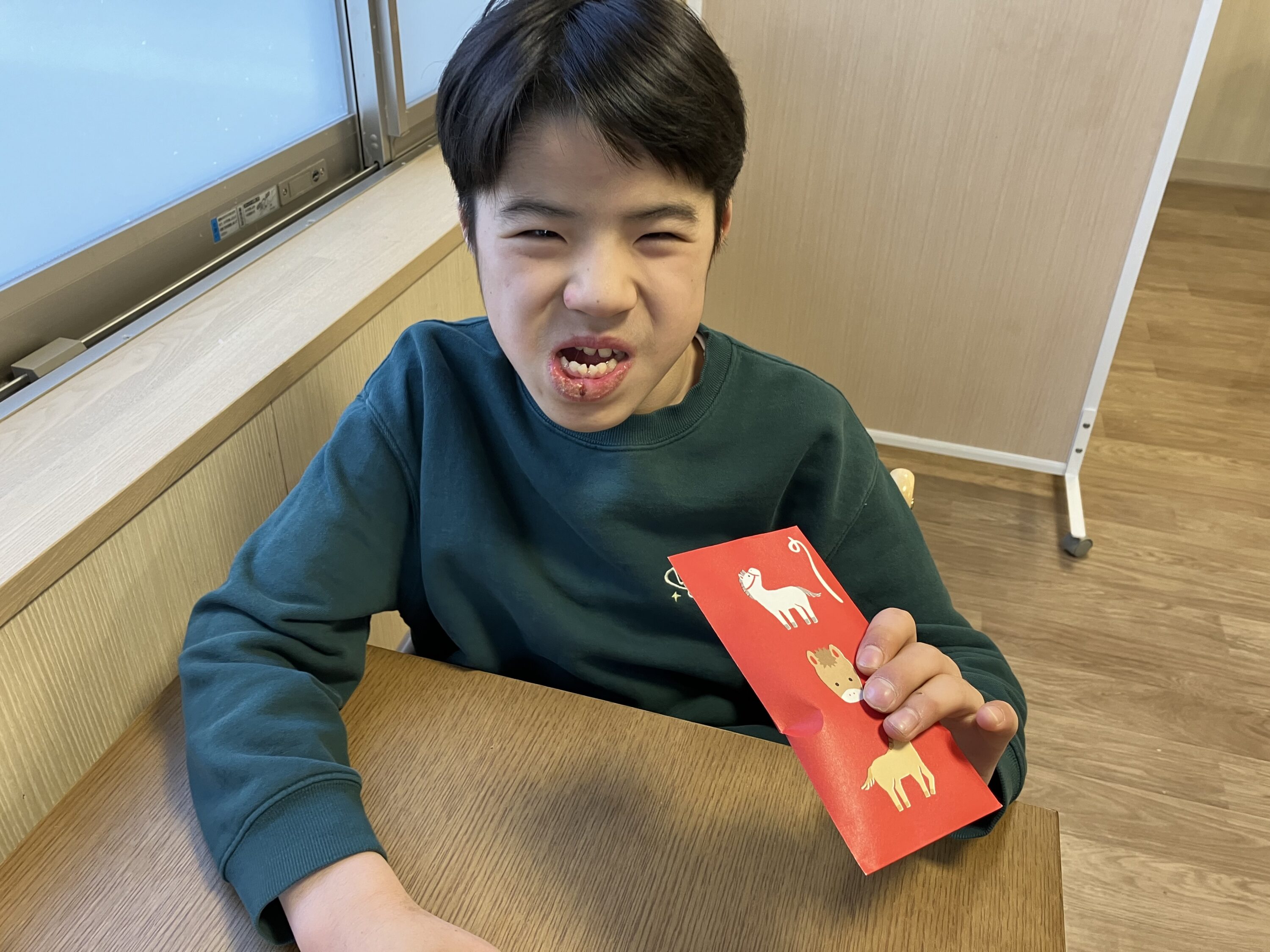 お年玉のお菓子をもらい嬉しそうでした♪