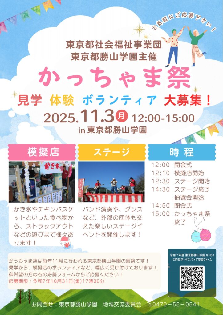 かっちゃま祭の開催と併せて、施設見学やボランティアを募集しています。